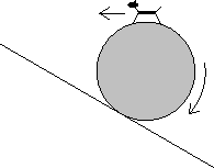 Sud tvaru valca polomeru R, v ktorom je voda hmotnosti m, sa vali po naklonenej rovine, pricom po nom bezi pes tak, ze je stale v najvyssom bode (pozri obrazok). S akym zrychlenim sa pohybuje sud? Hmotnost samotneho suda povazujte za zanedbatelnu voci hmotnosti vody v nom.