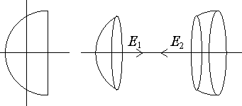 Majme rovnomerne nabitu polgulovu plochu bez podstavy s konstantnou plosnou hustotou elektrickeho naboja. Pretneme ju na polovicu rovinou kolmou na os symetrie a vzniknute casti vzdialime na dostatocnu vzdialenost. Porovnajte intenzity E1 a E2 v rovine prierezu, v bode na osi symetrie.