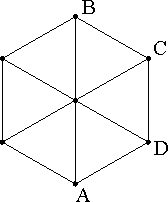 Z drotov je vyrobeny prvidelny 6-uholnik s uhloprieckami, pricom odpor kazdeho useku drotu je R. Urcte RAB, RAC, RAD.