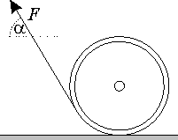 Mame cievku a na nej namotanu nit. Cievka je polozena na stole, nit sa nedotyka zeme. Pod akym najmensim uhlom mozeme tahat nit, aby sa cievka sice tocila, ale zostavala stale na tom istom mieste? Koeficient trenia je f.