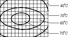 Vykonovy tranzistor produkujuci teplo je pripevneny k teplo-odvadzajucej dosticke, obklopenej vzduchom s teplotou 30oC. Na obrazku vidiet rozdelenie teploty na povrchu dosticky. Urcte tepelny vykon (teda teplo, ktore odovzda dosticka za jednotku casu okolitemu vzduchu).