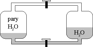 Mame zariadenie podla obrazku. Z nadob je vycerpany vsetok vzduch, takze nad volnou hladinou vody (H2O) sa nachadzaju iba nasytene vodne pary. Co presne sa bude diat, ked