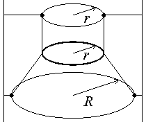 Obruc s polomerom 2r ako aj obruc s polomerom r su pevne uchytene o steny. Medzi nimi je na styroch dostatocne dlhych vlaknach volne polozena obruc s polomerom r. V akej vyske sa ustali stredna obruc?
