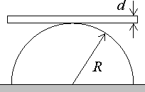 Na pologulu s polomerom R sme polozili dosku. Je tato poloha stabilna (t.j. prezije doska male tuknutie)? Zavisi to od hrubky d dosky?