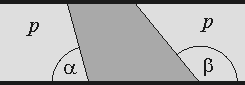 V trubici so stvorcovym prierezom je umiestneny hranol so stenami so sklonmi a, b. Na oboch stranach je plyn s tlakom p. Ktorym smerom a s akym zrychlenim sa zacne hranol pohybovat, ak povodne bol v klude?