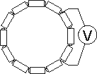 Dvanásť jednovoltových batérií je zapojených podľa schémy. Aké napätie ukazuje ideálny voltmeter na obrázku?