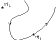 Dve telesá na seba pôsobia záhadnou silou neznámeho pôvodu. Žiadne iné (vonkajšie) sily na telesá nepôsobia. Na obrázku je záznam pohybu jedného z nich a polohy oboch telies v magickom okamihu O. Vtedy ich rýchlosti spĺňali vzťah v2 = 3v1, pričom ich smer bol opačný. Navyše viete, že m1 = 3m2. Doplňte do obrázka dráhu druhého telesa a popíšte postup, akým ste prenikli za tajomnú oponu nepoznaného! Tento seminár je organizovaný s podporou |