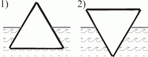 A-1.1 Pravý Pltnícky Problém (5 bodov) Predstavte si jazero s hustotou vody r, na ktorom pláva drevená klada. Klada má tvar hranola s podstavou rovnostranného trojuholníka (dĺžka strany je l) a je dosť dlhá (teda rozmery podstavy sú oveľa menšie ako výška). Hustota dreva je r/2. Táto klada môže plávať na jazere napríklad špicom nahor alebo nadol (obrázky). Zrátajte prácu, ktorú je potrebné vynaložiť na to, aby sa klada dostala zo stavu (1) do stavu (2). Je niektorá z týchto polôh stabilná? A-1.2 Balónomer (5 bodov) Experimentálne čo najlepšie určite závislosť polomeru balóna (bežného, z hračkárstva) od tlaku v jeho vnútri.