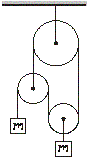 A-3.4 Kladky (5 bodov) Na obrázku je sústava kladiek, ktoré sa môžu otáčať bez trenia a pri výpočte ich môžeme považovať za nehmotné. Aké bude zrýchlenie závaží s hmotnosťami m, ak ich necháme voľne sa pohybovať? Tento seminár je organizovaný s podporou | ||