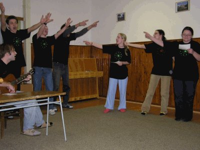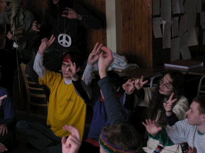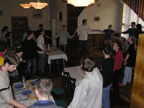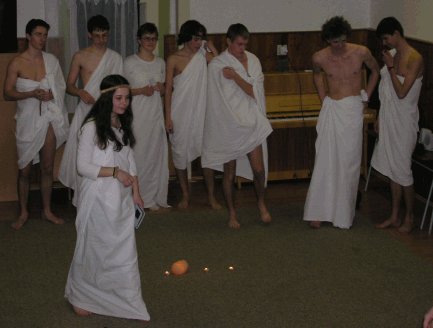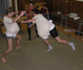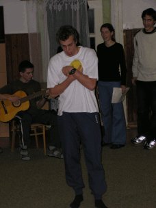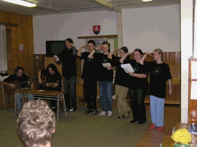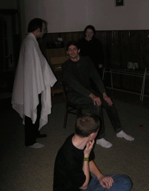 K tomuto netradičnému divadlu ozaj niet čo dodať.. Pamätám si iba že ma uviedli do tvrdého hypnotického stavu a potom som počul hlas, ktorému som nemohol odolať. Hlas ma nabádal aby som po návrate zo sústredka spal 15 hodín. Mrchy, vyšlo im to.