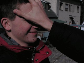 Lukáš sa svojim trýzniteľom rehoce do tváre..