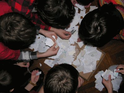 Tak a teraz by sa hodili popoluškine holuby.. Alebo hociaká iná gramotná háveď. Kto nájde v hromade skartovaného papiera dôležitú časť knihy návštev?