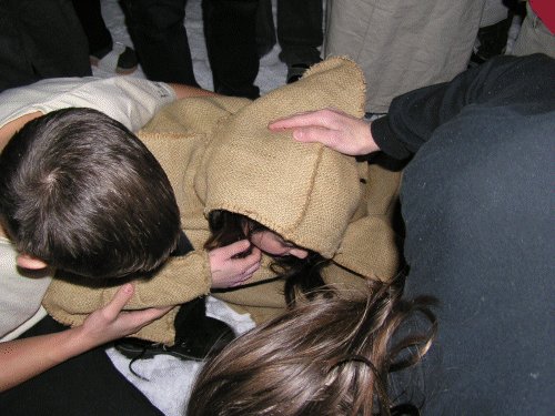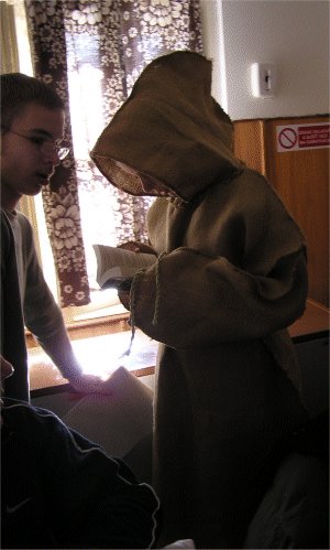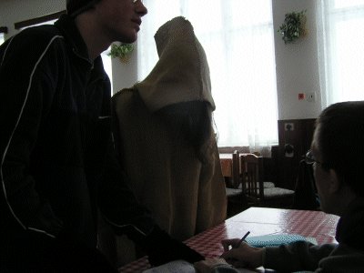 Divné stvorenie odené do vrecoviny, ktoré s knižkou v ruke chcelo účastníkom povedať niečo, na čo ešte neboli pripravení. |