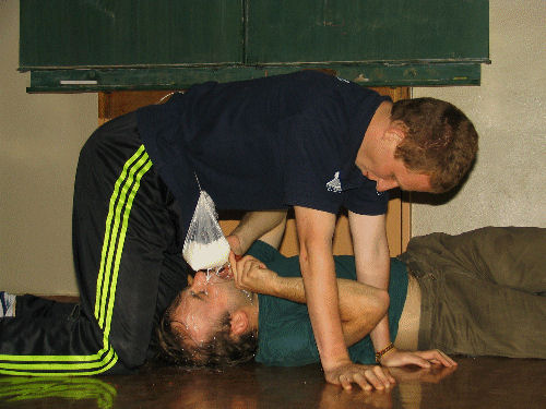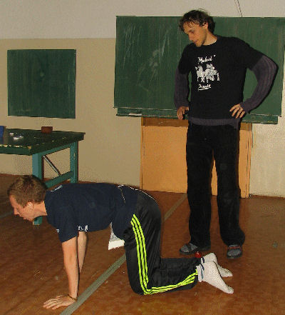 Paľo alias Kysučan. Kúsky mäsa pri jeho hlave pochádzajú z večere, rana na hrudi bola spravená prístrojom PainMaker2000 a náležite ošetrená naším zdravotníkom. Za oči, slezinu a mozog ďakujeme mäsokombinátu z Terchovej. |