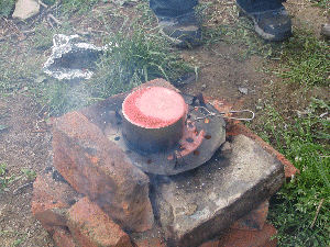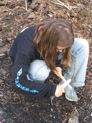 Správny skaut zakladá oheň trením nožíka o drevo. |