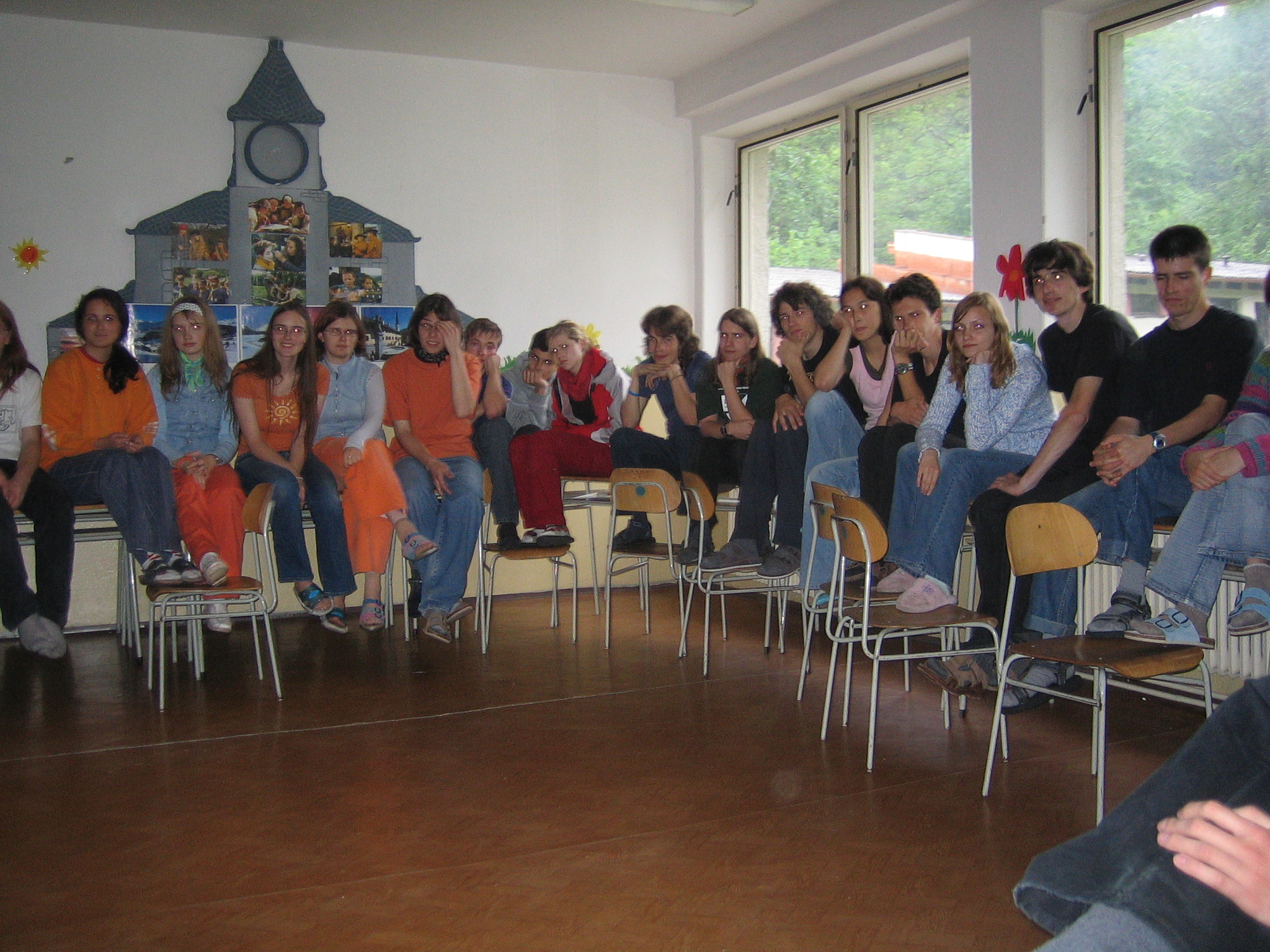 Vsetci sedia v kruhu a cakaju co bude dalej.
