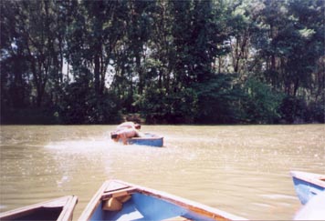 loďky si načerpali vodu do výšky 10 cm a šlo sa ďalej. Neďaleko bola